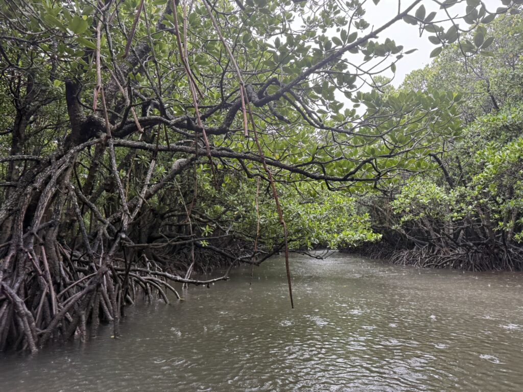 雨の日のマングローブ林は、とても静かで幻想的な空間に包まれます。ポチャポチャと水面に落ちる雨の音や、マングローブの葉を打つ雨音が天然のBGMになり、とっても耳心地が良いんです。心がスッと洗われるような、癒やしの時間を過ごせますよ。