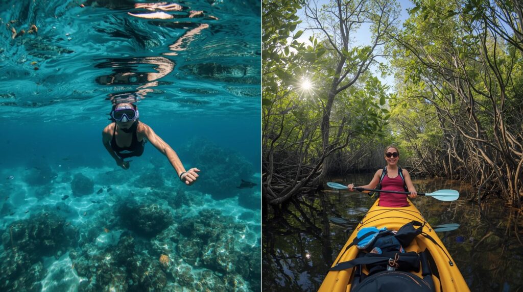 まずは午前中、マングローブカヤックで心地よい汗を流し(多少濡れる程度)、午後はシュノーケルで全身がっつり海に入ってクールダウンする、という流れが効率的でおすすめです♪
