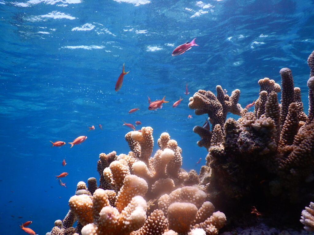 カラフルなサンゴや魚たちと海中で一緒に泳ぎたい!